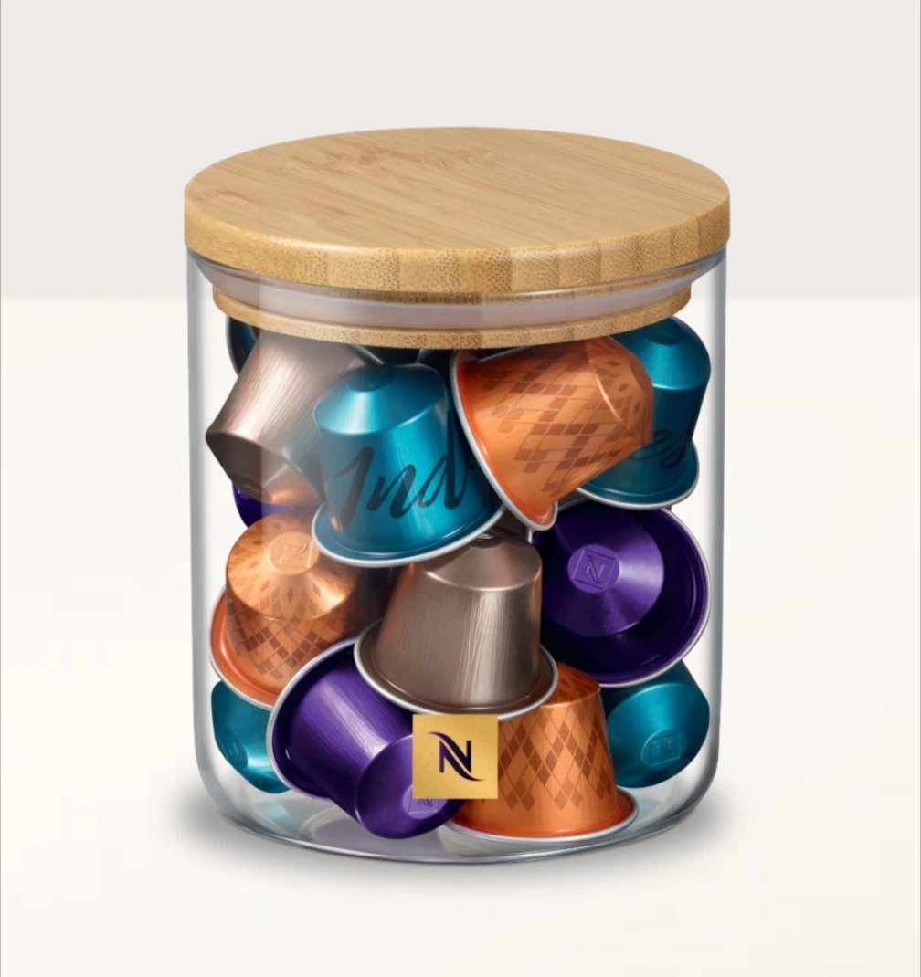طراحی مکعبی یا استوانه‌ای آن فضای نسبتاً کمی اشغال می‌کند و مناسب قرارگیری کنار دستگاه نسپرسو یا روی کانتر آشپزخانه است. بدنه شفاف باعث می‌شود کپسول‌های رنگی به‌عنوان عنصر تزئینی نیز ظاهر شوند و دسترسی سریع به آنها فراهم باشد